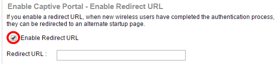 Etapa 10. (Opcional) Na tela Enable Captive Portal - Enable Redirect URL (Ativar portal cativo - Habilitar URL de redirecionamento), marque a caixa de seleção Enable Redirect URL se você tiver uma página da Web específica que deseja exibir depois que os usuários aceitarem os termos de serviço da página de boas-vindas.