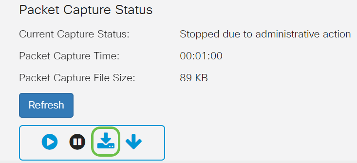 Etapa 4. Clique em Atualizar para obter o Status de Captura de Pacotes que contém os seguintes dados: