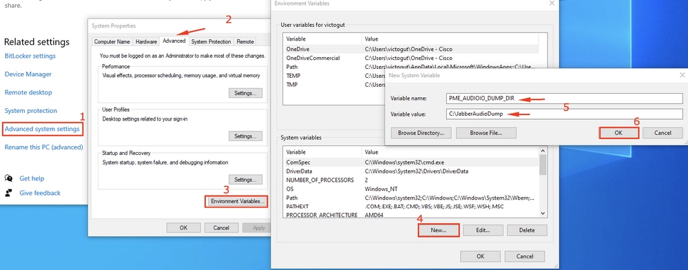 Etapa 2. Defina uma variável de ambiente chamada PME_AUDIOIO_DUMP_DIR no PC do usuário.