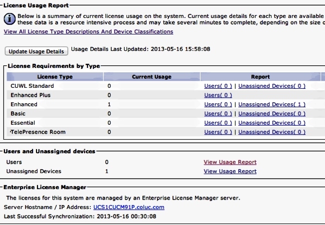 Clique em Atualizar detalhes de uso para exibir o Relatório de uso de licença do CUCM versão 9.1.1a e posterior: