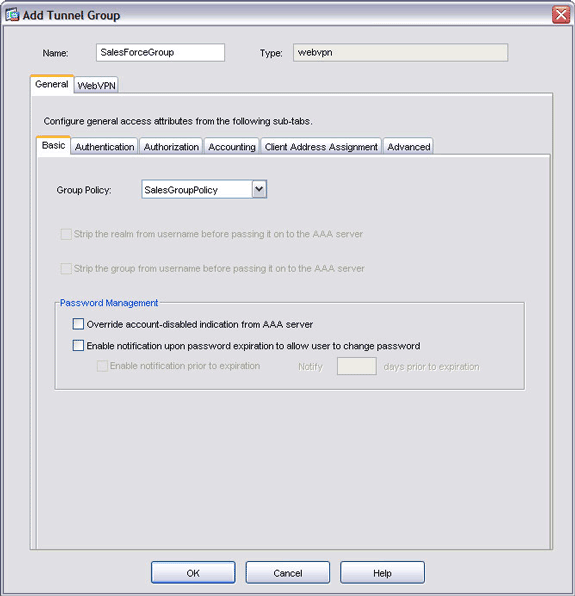在本示例中,隧道组名称已更改为 SalesForceGroup。