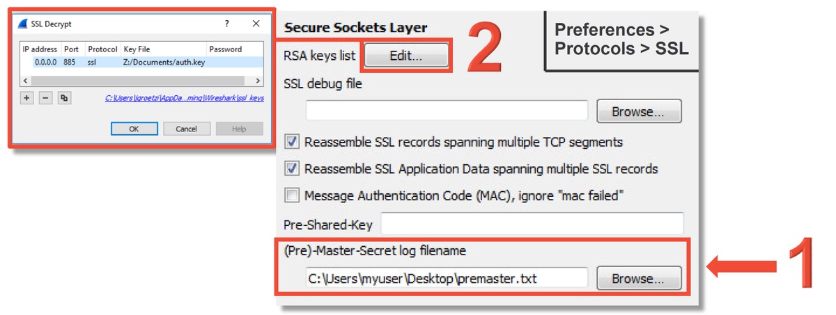 - Wireshark可以使用对称密钥(请参见下图)使用文件解密。