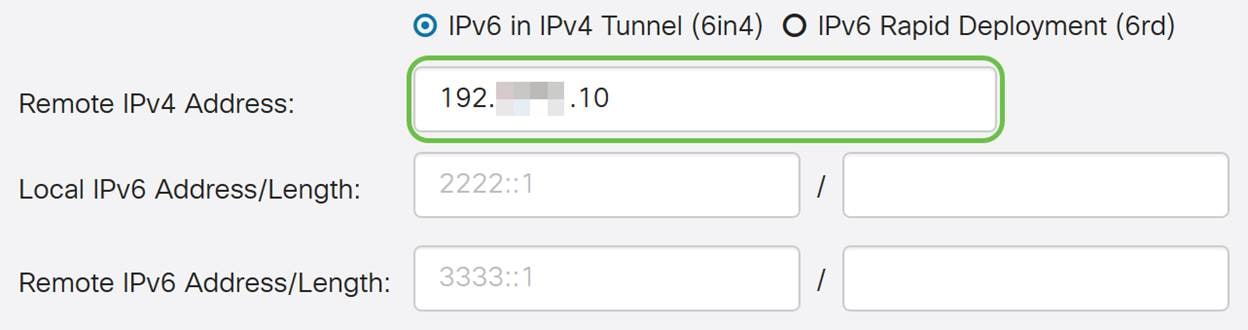 步骤1.选择IPv4隧道(6in4)中的IPv6单选按钮。