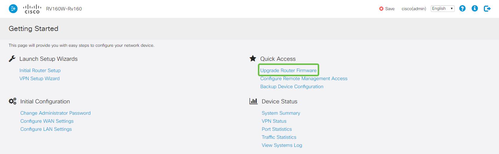 步骤2.登录路由器的管理接口后,可以使用快速链路。
