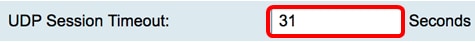 步骤3.在UDP会话超时字段中,输入从会话表中删除非活动用户数据报协议(UDP)会话的持续时间(以秒为单位)。超时的范围是从 30 到 86400 秒。默认时间为 30 秒钟。