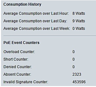 您可以查看每个端口或整个设备的PoE消耗信息。