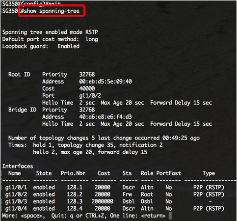 步骤12.(可选)要显示交换机上的STP设置,请输入以下命令: