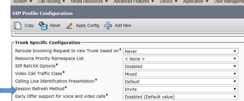 3.将会话刷新设置为Invite(而不是更新),从CUCM 10.x开始。