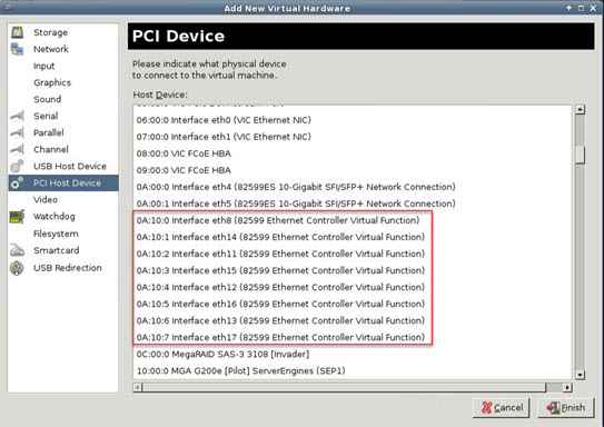 PCI 直通中的 i40e - 将服务器的物理 NIC 指定给 VM,并通过 DMA(直接内存访问)在 NIC 与 VM 之间传输数据包数据。移动数据包不需要任何 CPU 周期。