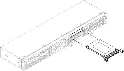 | 步骤 4 | To replace the SSD, make sure the power switch is still in the OFF position, and then hold the SSD in front of slot 1 and push it in gently until it is seated. | ||