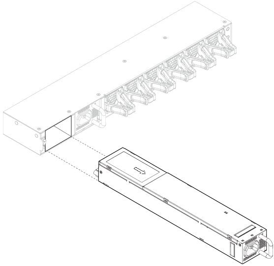 | 步骤 4 | To replace a power supply module, hold the power supply module with both hands and slide it into the power supply module bay. |