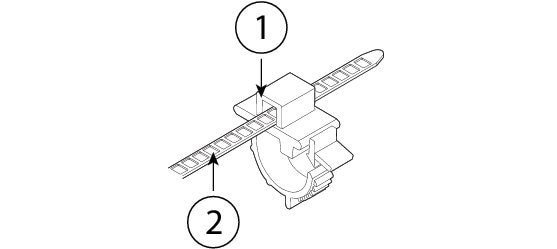 The black tie wrap is used with the Flextronics power supply module and the off-white tie wrap is used with the Artesyn power supply module. The black clamp works with both. See the figures below.