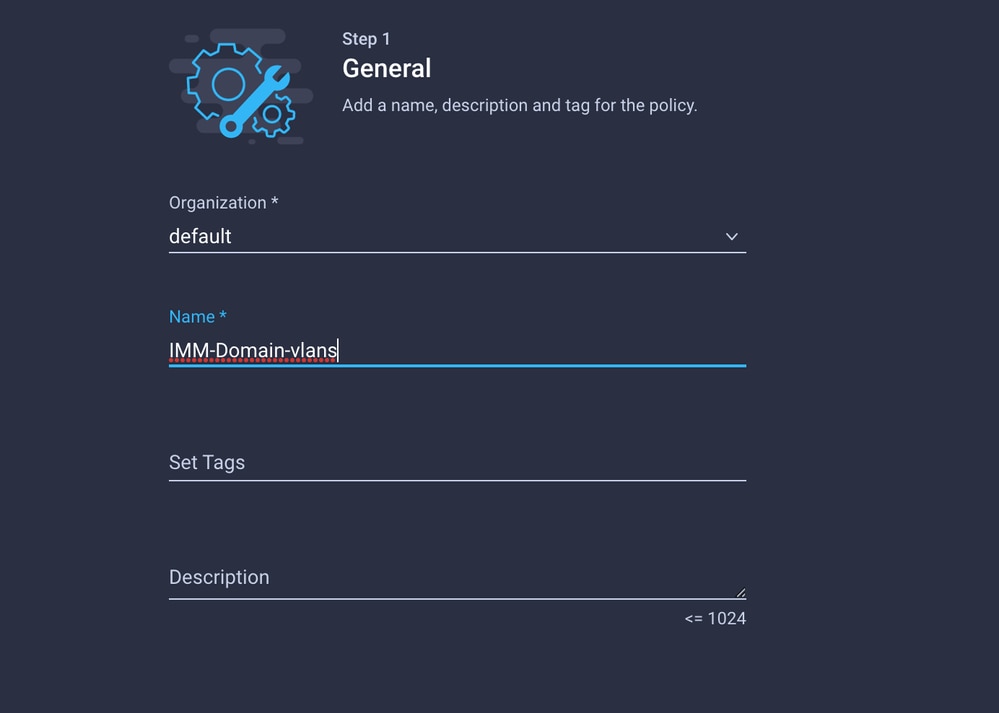 導覽至Policies > Create Policy > VLAN。