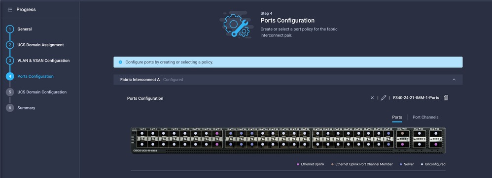 將步驟4.中建立的埠策略分配給交換矩陣互聯A和B,然後進入Summary部分。