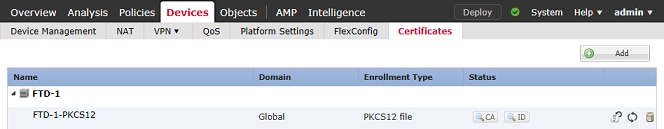 在FMC中,導覽至Devices > Certificates。有關相關信任點,請點選CA或ID以檢視證書的更多詳細資訊,如下圖所示。