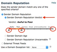 - if sdr-reputation(['bad', 'poor'], "<domain_exception_list>")>>這包括使用域例外清單
