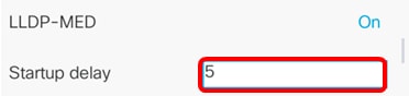 步驟13.在啟動延遲欄位中,輸入交換器進入轉送狀態的延遲值,然後電話才會發出第一個LLDP-MED封包。預設延遲為3秒。對於某些交換機的配置,您可能需要將此值增大到更高的值,LLDP-MED才能正常工作。設定延遲對使用跨距樹狀目錄通訊協定(STP)的網路可能非常重要。