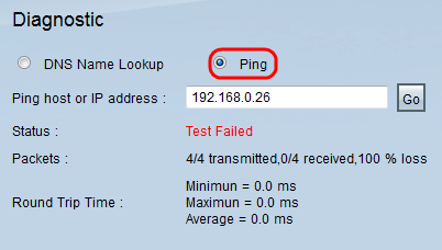 步驟 53.在Ping主機或IP地址欄位中,輸入192.168.0.26,然後點選Go。