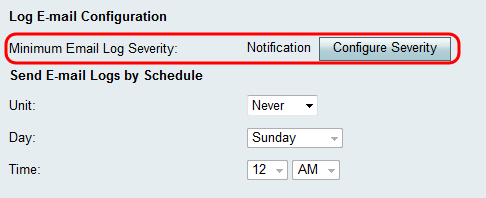 步驟4.(可選)Minimum Email Log Severity欄位顯示可以觸發要傳送的日誌消息的最低有效事件。按一下Configure Severity按鈕將進入Log Settings頁。您可以從此處調整最低嚴重性和其他日誌設定。