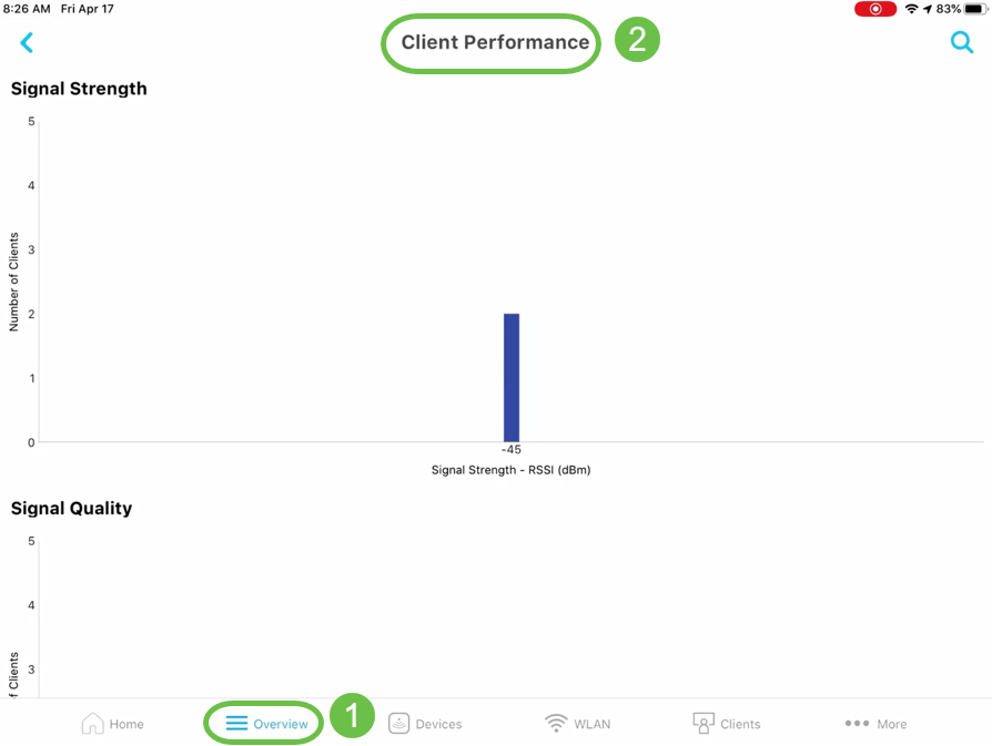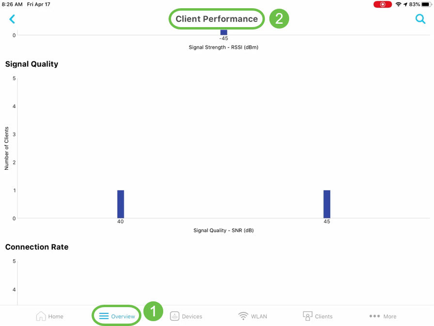 在Web UI上,導航到Monitoring > Network Summary > Client Performance。
