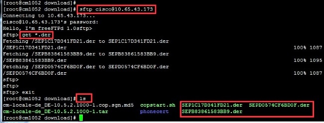 - 執行utils capf csr dump命令。此螢幕截圖顯示正在傳輸到FTP的轉儲。