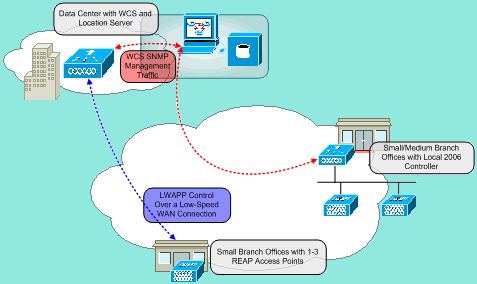 如果所有使用者資料必須在本地終止(即在AP的有線埠終止,而不是在控制器終止,因為所有其他LAP都是如此),則1030 REAP可用於允許通過控制器介面和/或無線控制系統(WCS)進行集中控制。 這樣資料就能夠保留在本地位置。