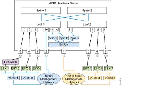 ■ Service nodes should be connected using the out-of-band connection. The service node and the APIC should be in the same subnet. For information on connecting Layer 4 to Layer 7 services to the Simulator, refer to the Cisco Application Centric Infrastructure Simulator Installation Guide.