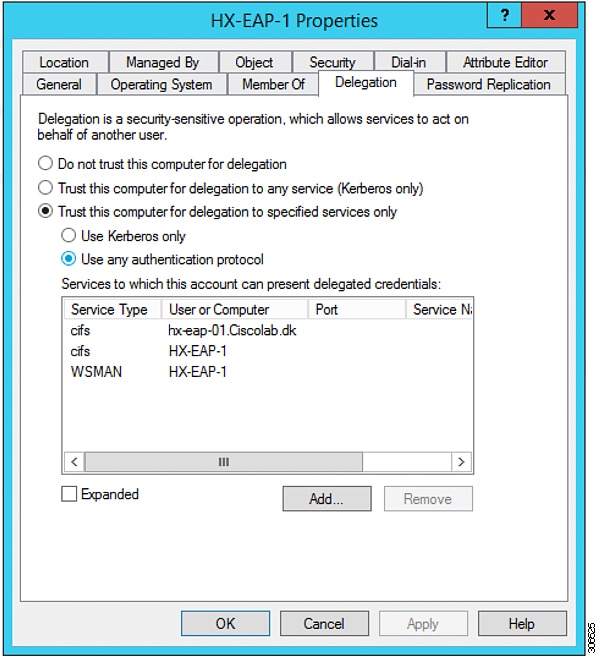 この手順は、初期インストール時に制約付き委任を設定していない場合にのみ実行する必要があります。この手順は、インストール後ではなく、HX のインストーラを使用して実行することをお勧めします。 |