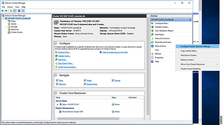 次の手順では、Microsoft Windows 2016 のファイル共有監視を設定する方法について説明します。Microsoft Windows 2019 を導入する場合は、HyperFlex 共有または他のファイル共有を監視として使用しないでください。Microsoft は、今後のパッチ リリースで解決される Windows 2019 の不具合を特定しました。それまで、監視を行わずに Microsoft Windows 2019 フェールオーバ クラスタを設定する必要があります。