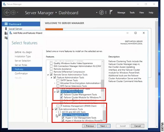 インストール リモート サーバの管理ツール (RSAT) 管理ステーション/ホストで: Hyper-V Manager とサーバ マネージャの機能との Failover Cluster Manager などの管理ツールをインストールする必要があります。詳細については、管理ステーションまたはホストへの RSAT ツールのインストールを参照してください。
