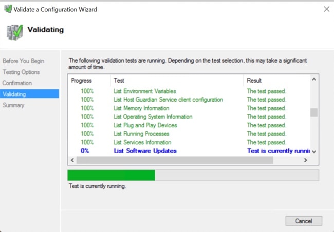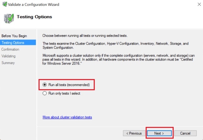 [Run all tests (すべてのテストを実行)] (推奨) を選択し、[Next (次へ)] をクリックします。 ![]() [Next (次へ)] をクリックすると、検証手順が開始されます。 |