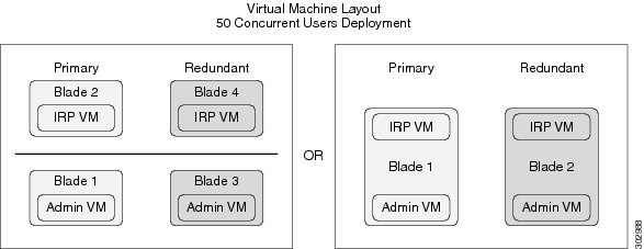 This is a schematic diagram of a 50 user system. The diagram illustrates two versions of a 50 user deployment. If you plan to add a HA system, those virtual machines are shown as the "redundant" virtual machines. If you do not want HA, then only deploy the primary system.