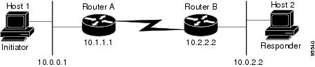 The figure below shows the topology of a typical preshared configuration setup. Host 1 is the initiating peer (initiator), and Host 2 is the receiving peer (responder).