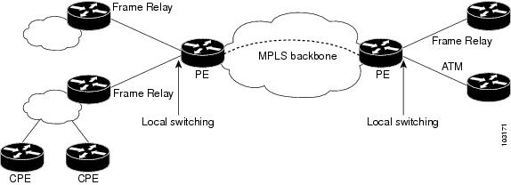 The figure below shows a network that uses local switching for both Frame Relay to Frame Relay and ATM to Frame Relay local switching.