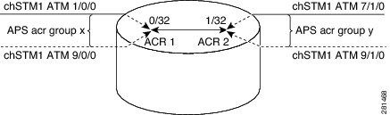 The cells or packets received on the APS active interface VC (0/32) of ACR group 1 are switched to the ACR 2 interface VC (1/32) and the cells or packets from the APS inactive interface are dropped.