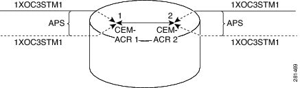 The packets received on the CEM circuit ID 1 of the APS active interface, which is part of ACR group 1, are switched to the CEM circuit ID 2 of the APS active interface, which is part of ACR group 2.