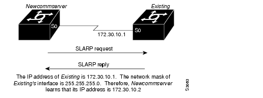 The following minimal network configuration file maps the new access server's IP address, 172.30.10.2, to the host name Newcommserver. The new access server's address was learned via SLARP and is based on the existing access server's IP address of 172.30.10.1.