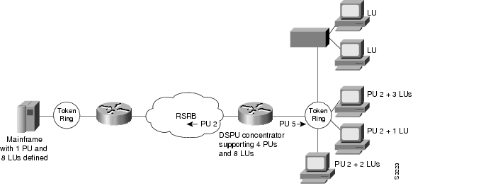 The DSPU feature allows you to define downstream PU type 2 devices in the Cisco IOS software. DSPU reduces the complexity of host configuration by letting you replace multiple PU definitions that represent each downstream device with one PU definition that represents the router.