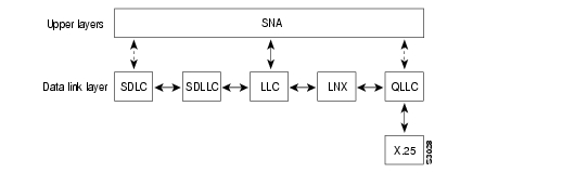 SNA uses SDLC and LLC2 as link layer protocols to provide a reliable connection. The translation function between these industry-standard protocols takes place in the proprietary Cisco software.