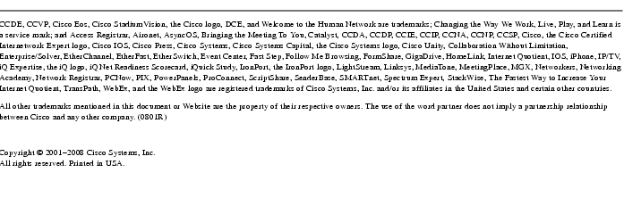Cisco Marketplace provides a variety of Cisco books, reference guides, documentation, and logo merchandise. Visit Cisco Marketplace, the company store, at this URL: