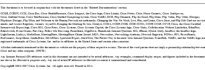 "What's New in Cisco Documentation" is an online publication that provides information about the latest documentation releases for Cisco products. Updated monthly, this online publication is organized by product category to direct you quickly to the documentation for your products. You can view the latest release of "What's New in Cisco Documentation" at this URL: