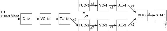 You can configure each of the AUGs and TUGs of a PA-MC-STM-1 to carry a set of E1 links that are mapped into tributary unit level-12s (TU-12s).