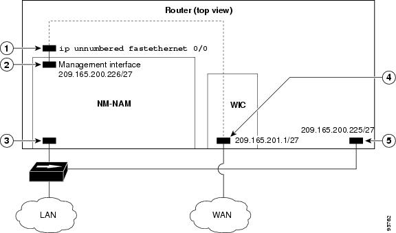 Figure 9 Sample Topology: NAM Management Interface Is External and Analysis-Module Interface Is IP Unnumbered