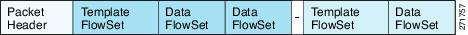 The Version 9 export format consists of a packet header followed by one or more template flow or data flow sets. A template flow set provides a description of the fields that will be present in future data flow sets. These data flow sets may occur later within the same export packet or in subsequent export packets. Template flow and data flow sets can be intermingled within a single export packet, as illustrated in Figure 5.