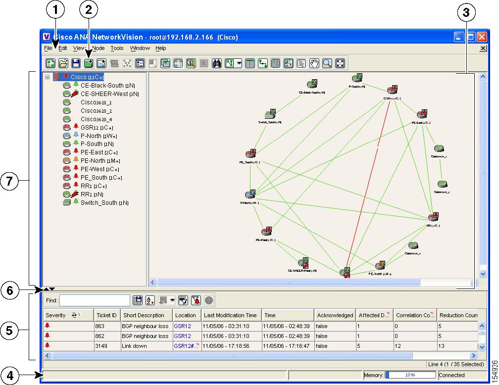 The Cisco ANA NetworkVision window provides access to all Cisco ANA NetworkVision's functionality.