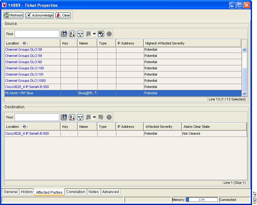 For more specific information on tickets, including fault and IP correlation, MPLS-TE (Traffic Engineering), refer to the Cisco Active Network Abstraction Managing MPLS User Guide.
