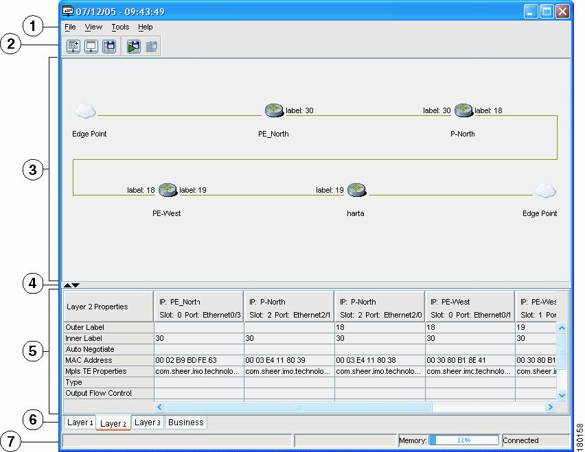 Business—This area displays the name and the key of the business tags that have been attached to the network entities displayed, namely, the port or the entire device (physical entity), VC, VP, DLCI, context (logical entity) or MPLS. This information is displayed in the Business Tag area.