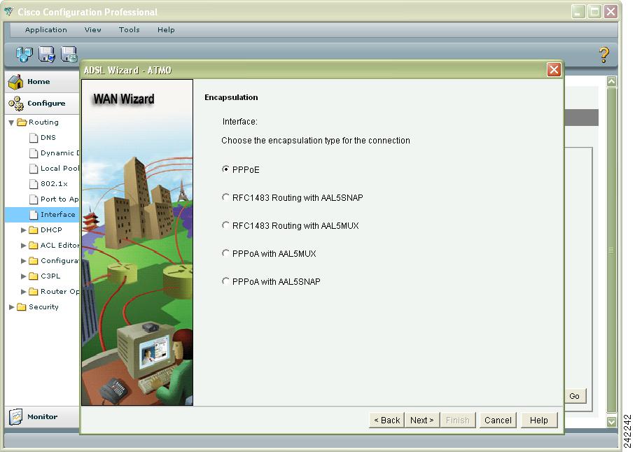 To begin configuration using the wizard, click Next. Figure 21 shows the ADSL Encapsulation screen, which allows you to choose the type of encapsulation to use.