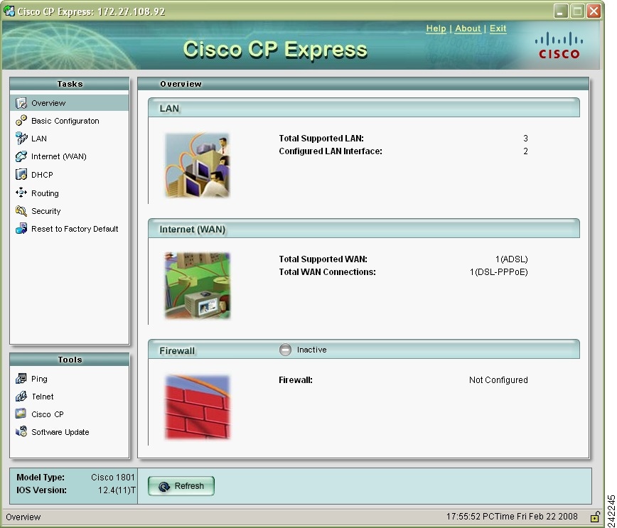 If the Cisco CP Express overview window is displayed, you have validated the LAN interface configuration.