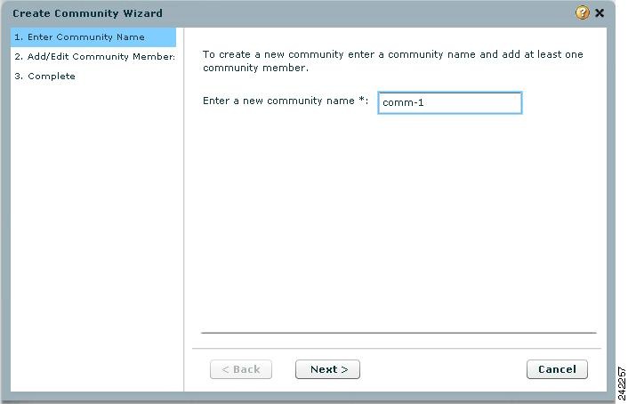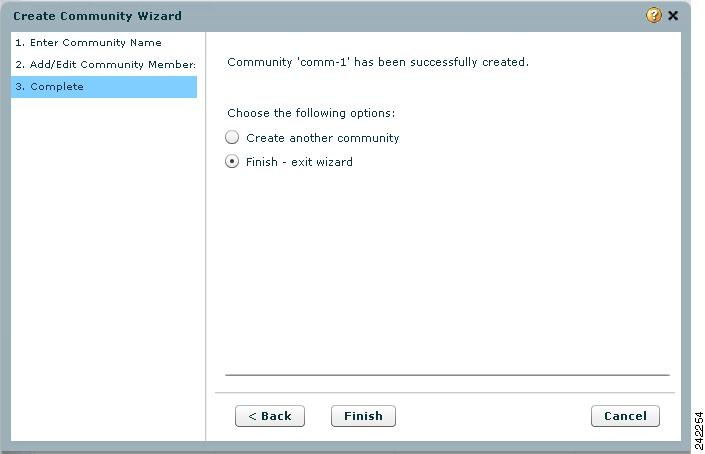 To create another community, check Create another community, and click Finish. Cisco CP returns you to the Enter Community Name screen.